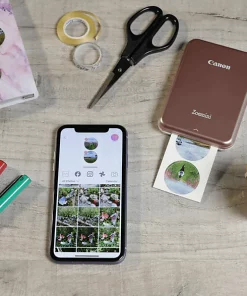 Associez le papier photo ZINK™ rond prédécoupé avec une sélection d’appareils Canon Zoemini et transformez vos photos faites depuis votre téléphone mobile ou tablette en précieux objet-souvenirs, en cadeaux et en décorations. La technologie innovante ZINK™ du papier photo produit des tirages instantanés résistants aux traces de doigts, étanches et indéchirables, sans encre et en toute facilité, et est idéale pour imprimer vos photos où que vous soyez. Les photos peuvent être affichées presque partout : enlevez simplement le papier de sécurité pour révéler le côté collant et appliquez-le sur la coque de votre téléphone portable, votre ordinateur portable ou votre gourde pour une personnalisation instantanée.