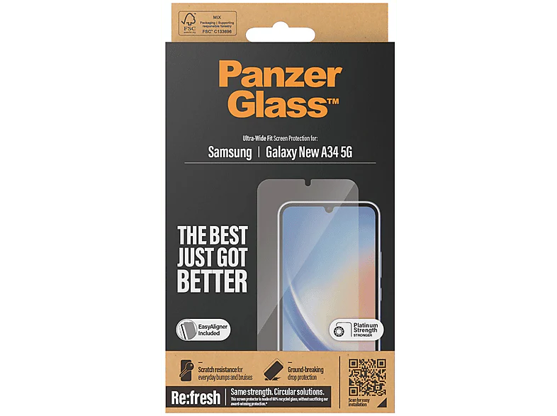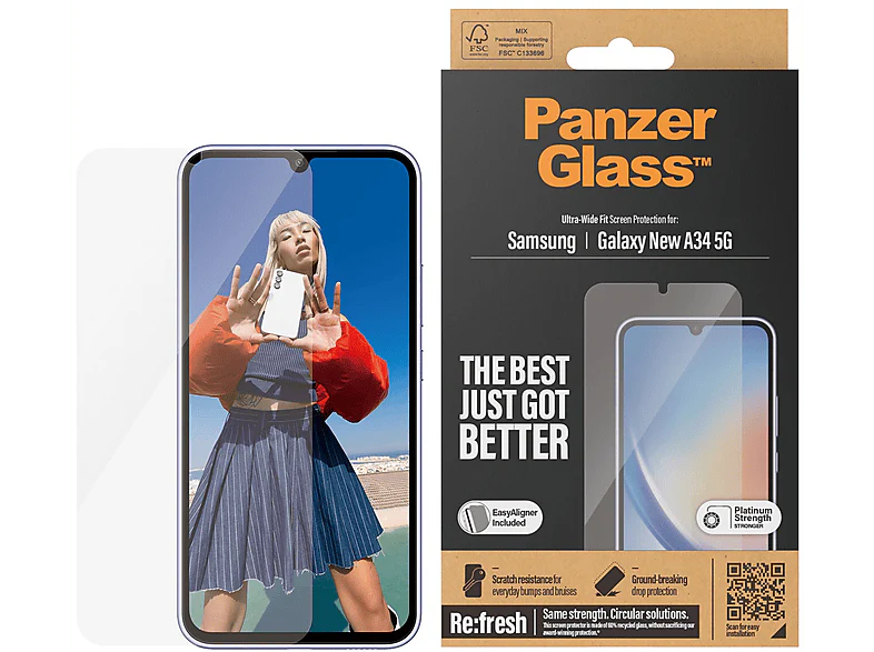 PANZERGLASS Protection d’écran Galaxy A34 5G Transparent (PZ-7357) Protection d’écran voor Samsung Galaxy New A34 5G Transparent